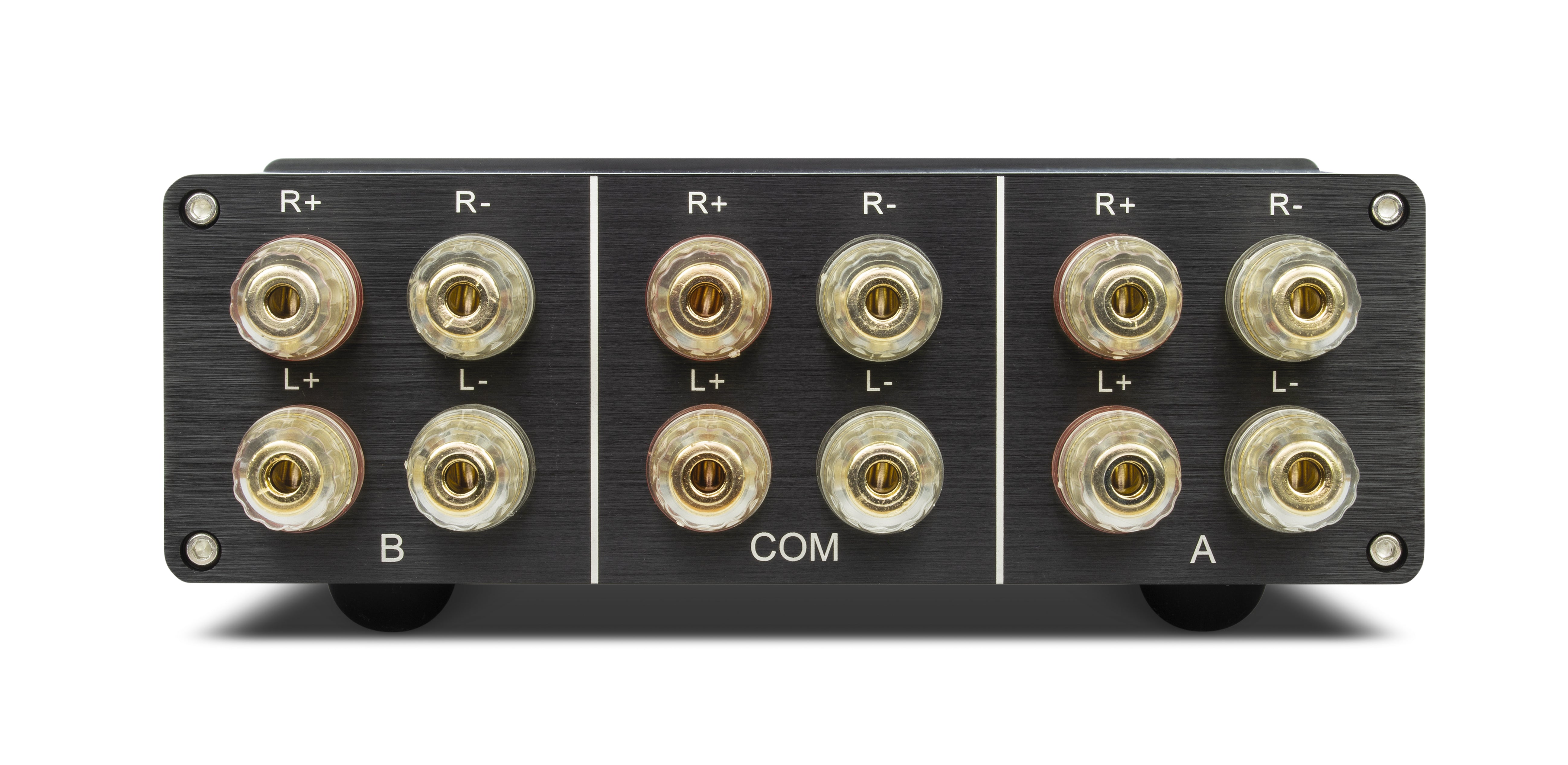 De AMP-S III is dé switcher voor wie net iets meer wil: de behuizing met zijn tijdloze design is volledig van aluminium en beschikt over een solide, 8 mm dik frontpaneel. Met zijn royale geleider doorsnede van 4 mm² en een tuimelschakelaar met ruim voldoende vermogen en lage overgangsweerstand voldoet de AMP-S III ook aan de hoogste eisen. De AMP-S III biedt de mogelijkheid om te schakelen tussen twee luidsprekerparen bij gebruik van een hifi-versterker. Omgekeerd biedt deze switcher ook de mogelijkheid om twee verschillende hifi-versterkers (bijv. stereo en surround) met één luidsprekerpaar te bedienen. De AMP-S III beschikt over grote, massieve banaanstekkers (geschikt voor schroefklemmen en banaanstekkers) voor zelfs luidsprekerkabels met een grote doorsnede. De intern geïnstalleerde geleider doorsnede van 4 mm² en de massieve netschakelaar maken een schakelvermogen tot 600 Watt per kanaal mogelijk. De elegante, solide aluminium behuizing biedt uitstekende afscherming tegen elektromagnetische straling, terwijl het design prachtig en elegant aansluit bij uw hifi-componenten. De hoogwaardige schakelaar, die schakelt tussen positieve en negatieve stromen, beschermt de aangesloten componenten tegen kortsluiting door de schakelaar in de neutrale stand te houden.